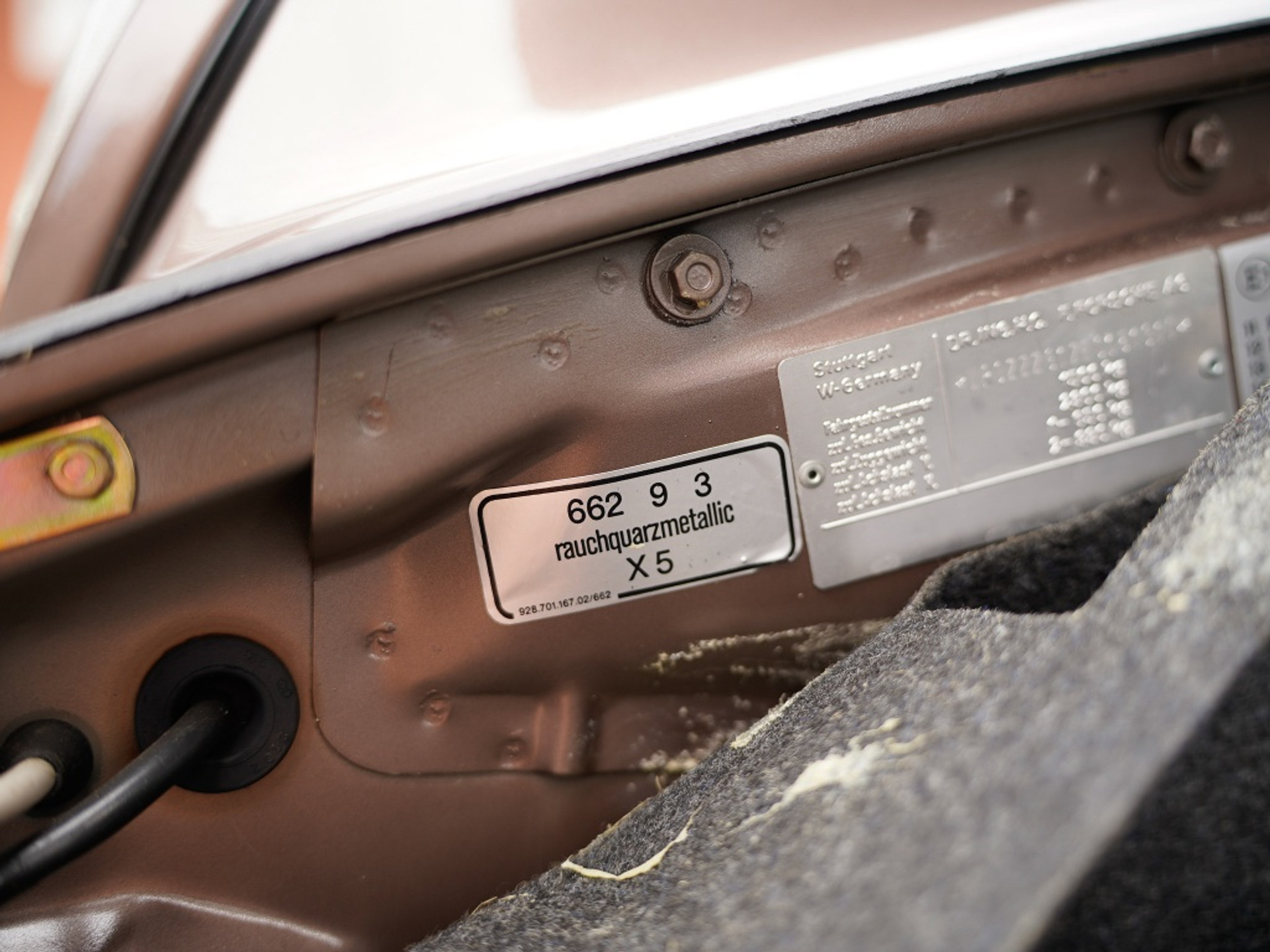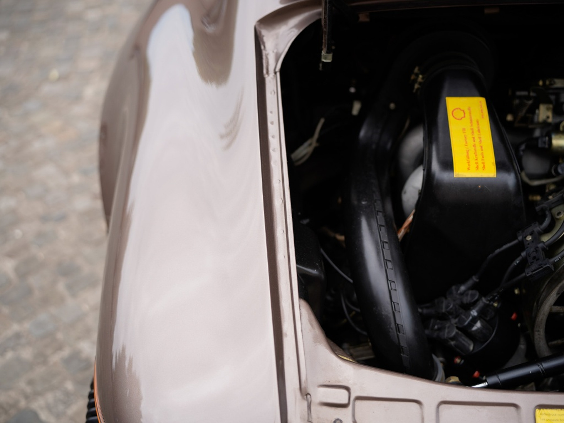 De opvallende kleur Rauchquarz Metallic – slechts voor een korte periode beschikbaar op de 911 – behoudt een prachtige glans en een authentieke patina. De carrosserie is voor 95% in originele lak, met kleine retouches aan de achterzijde en de linker voordeur. De wagen is 100% ongevalvrij.