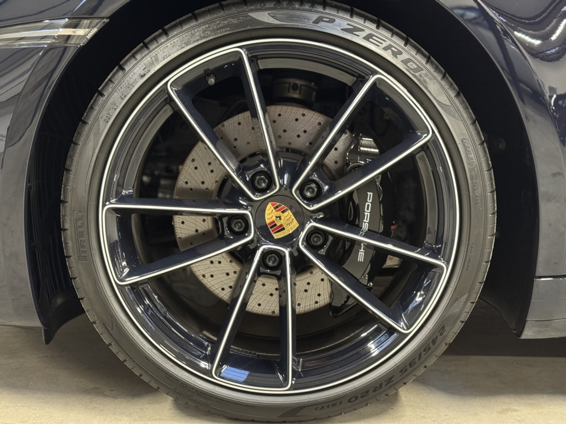 21-inch Carrera Exclusive Design velgen: Afgewerkt in Satin Platinum met Porsche-logo’s.