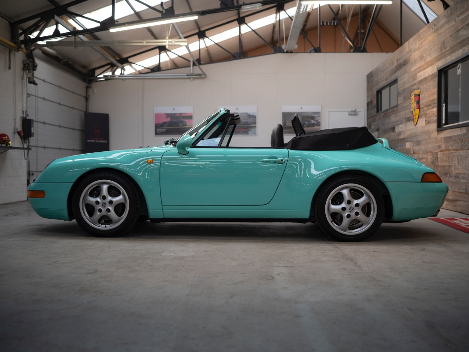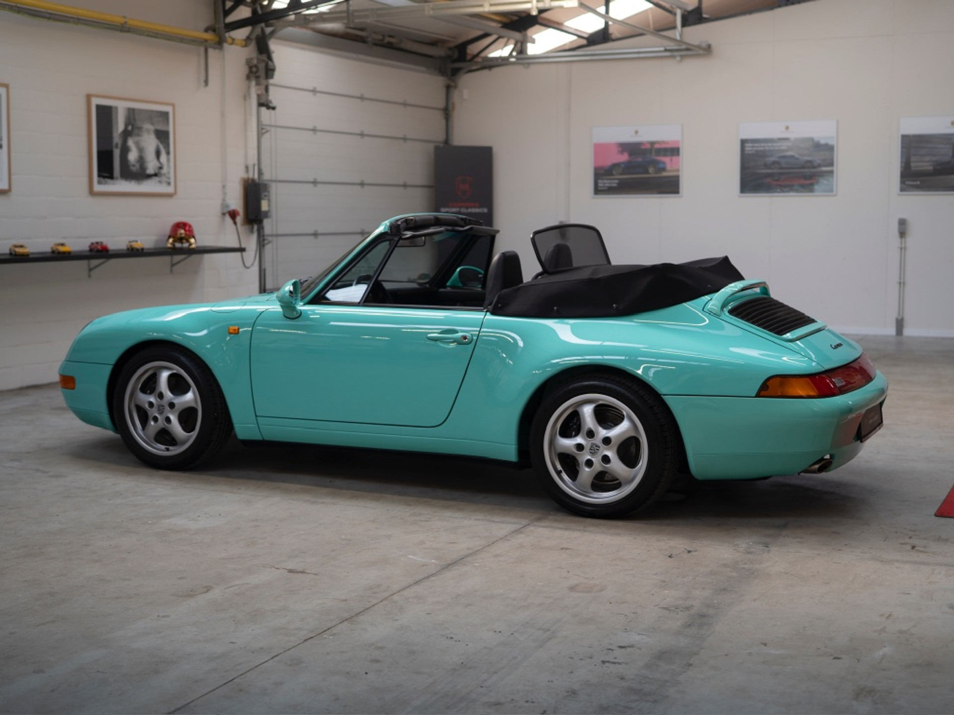 Extreem zeldzaam: Porsche 993 Carrera 2 in de iconische Porsche kleur Mint Green (Paint-to-Sample) – manueel, origineel geleverd in Duitsland, en jarenlang eigendom van dezelfde eigenaar.