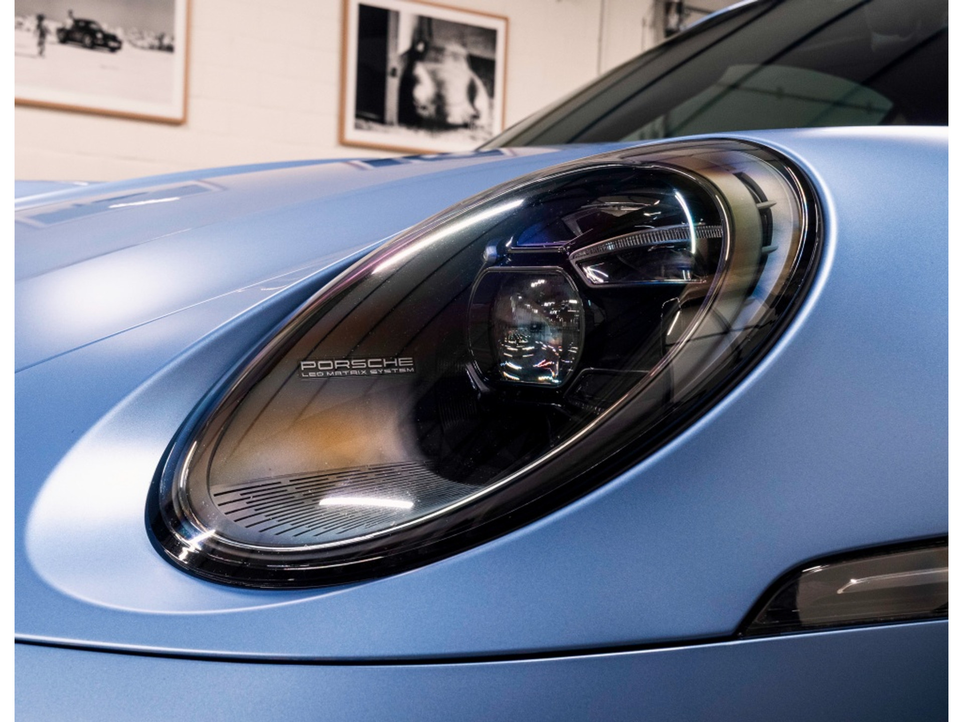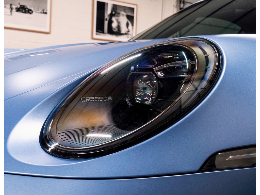 Paint-to-Sample Gemini Blue (OUB) · Volledige matte PPF · Aerokit (VM2) · SportDesign hoogglans zwarte elementen (VK2, 2D0) · Sportuitlaatsysteem zwart (0P9) · LED Matrix-koplampen donker incl. PDLS+ (8JU) · Achterlichten Exclusive Design wit (1V3 / 8UH) · Hoogglans zwarte luchtinlaten en roosterelementen · Spiegelschaal exterieur carrosseriekleur (6FU) · Aluminium look brandstofdop (2W6) · Surround View (KA6).