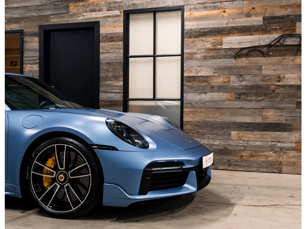 Binnenin is de Turbo S uitgevoerd in een prachtig volledig Graphite Blue vollederinterieur, verfijnd met Crayon contraststiksel, mat carbon interieuraccenten, lederbeklede details en zonnekleppen in Alcantara. Het geheel straalt exclusiviteit, sportiviteit en vakmanschap uit – exact zoals je van een Porsche Exclusive-manufaktur auto mag verwachten.