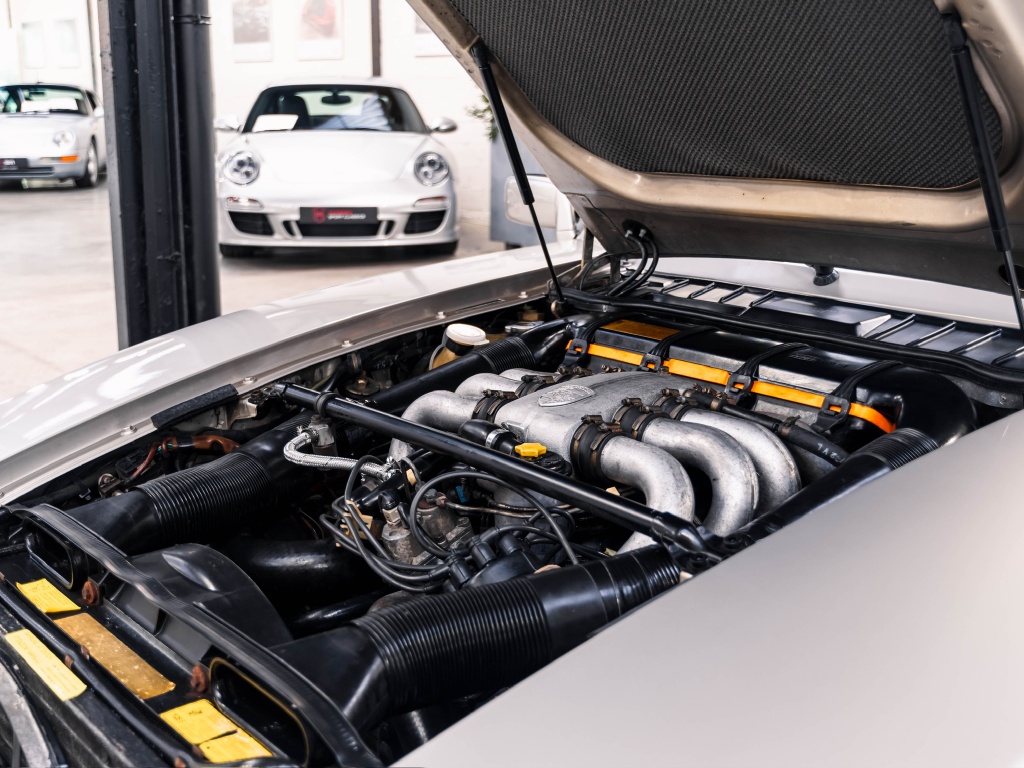 Uitgevoerd in Zinn Metallic (956), een Sonderfarbe die je slechts zeer zelden ziet op een 928. De kleur past perfect bij het elegante en gespierde design van de wagen en geeft hem een stijlvolle, volwassen uitstraling.