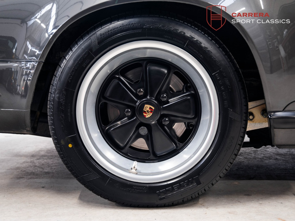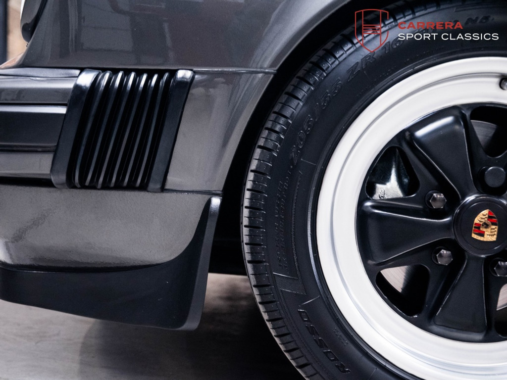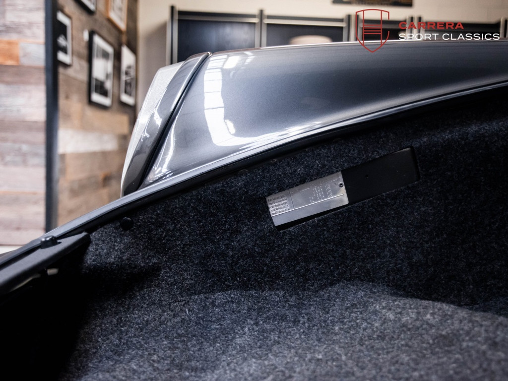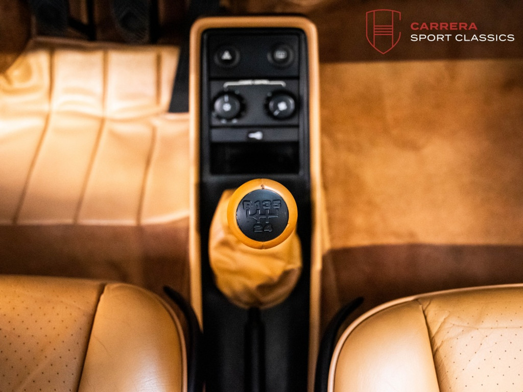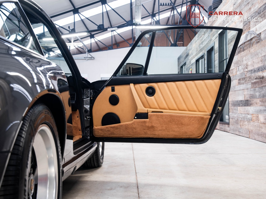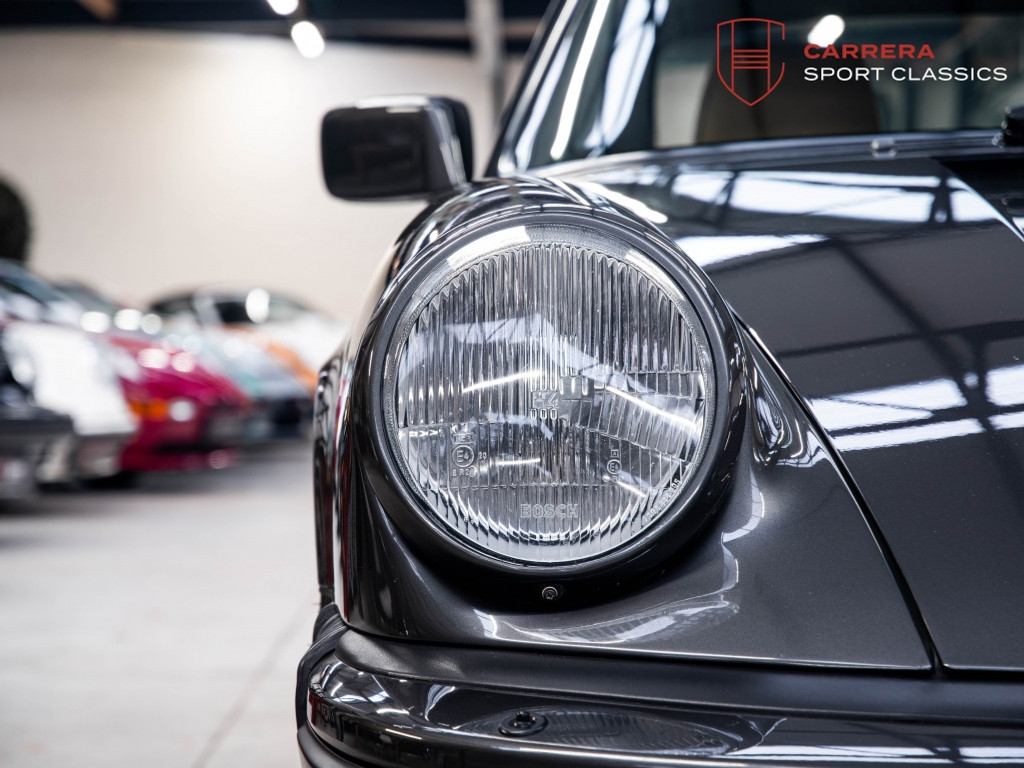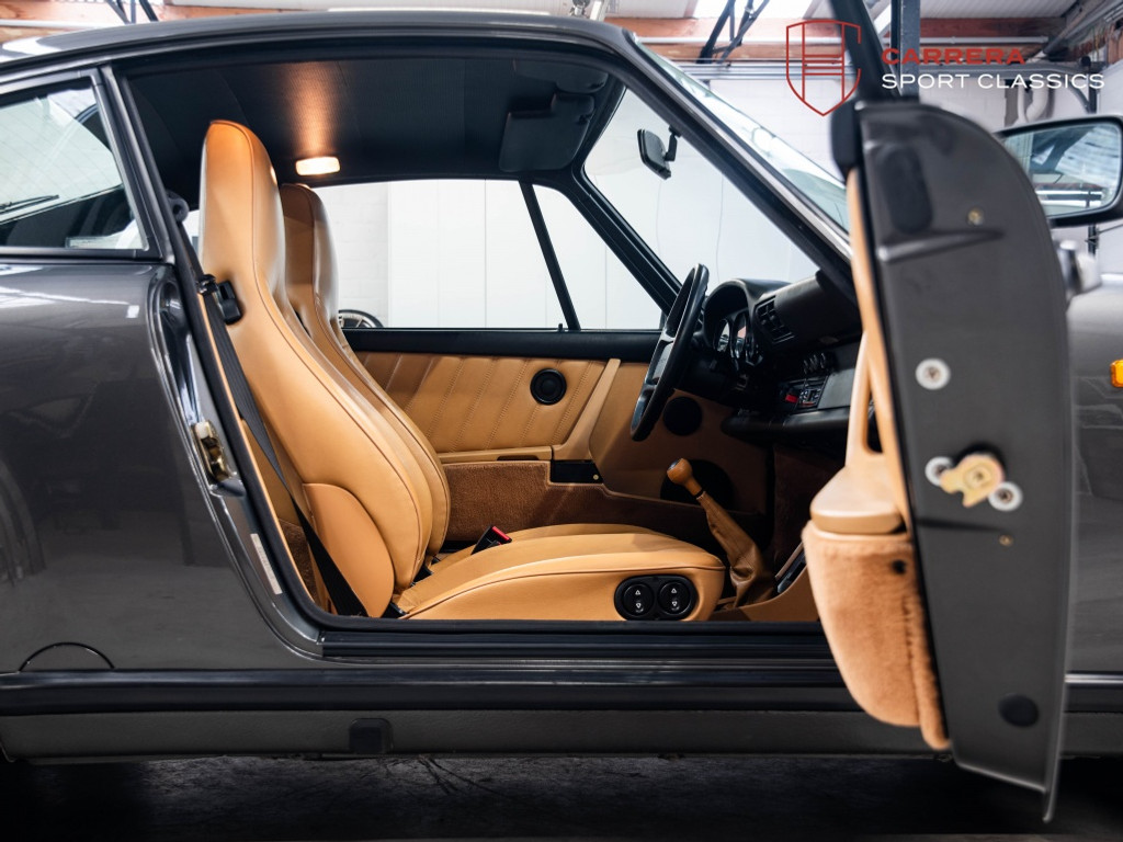 De wagen is uitgevoerd in het elegante en relatief zeldzame Slate Grey Metallic (L22D) gecombineerd met Cashmere Beige leder (LC). Een bijzonder stijlvolle en tijdloze kleurcombinatie die perfect past bij de lijnen van de klassieke G-serie 911. Slate Grey is bovendien een kleur die zelden voorkomt op late 3.2 Carrera’s en zeer geliefd is bij verzamelaars.