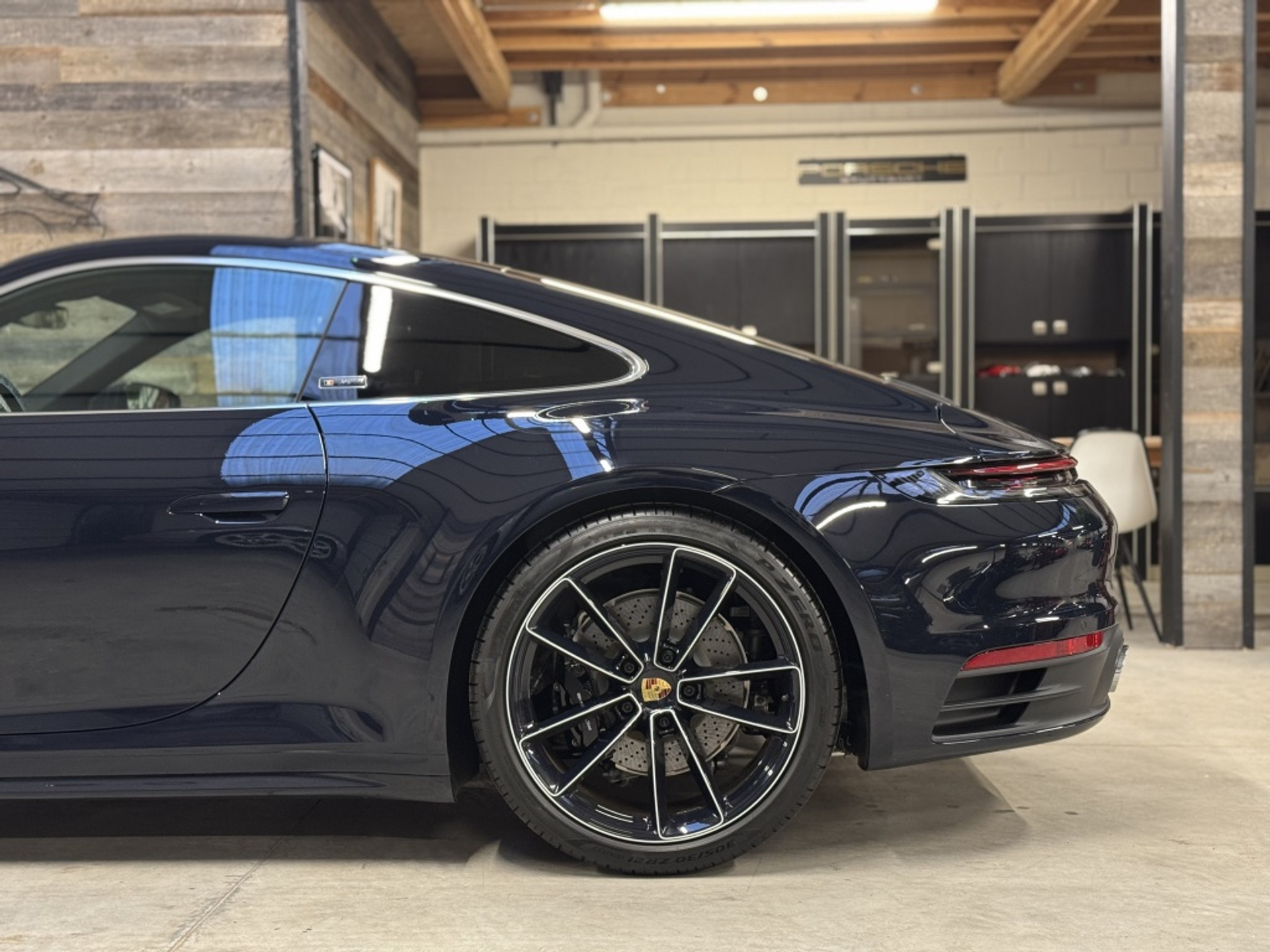21-inch Carrera Exclusive Design velgen: Afgewerkt in Satin Platinum met Porsche-logo’s.