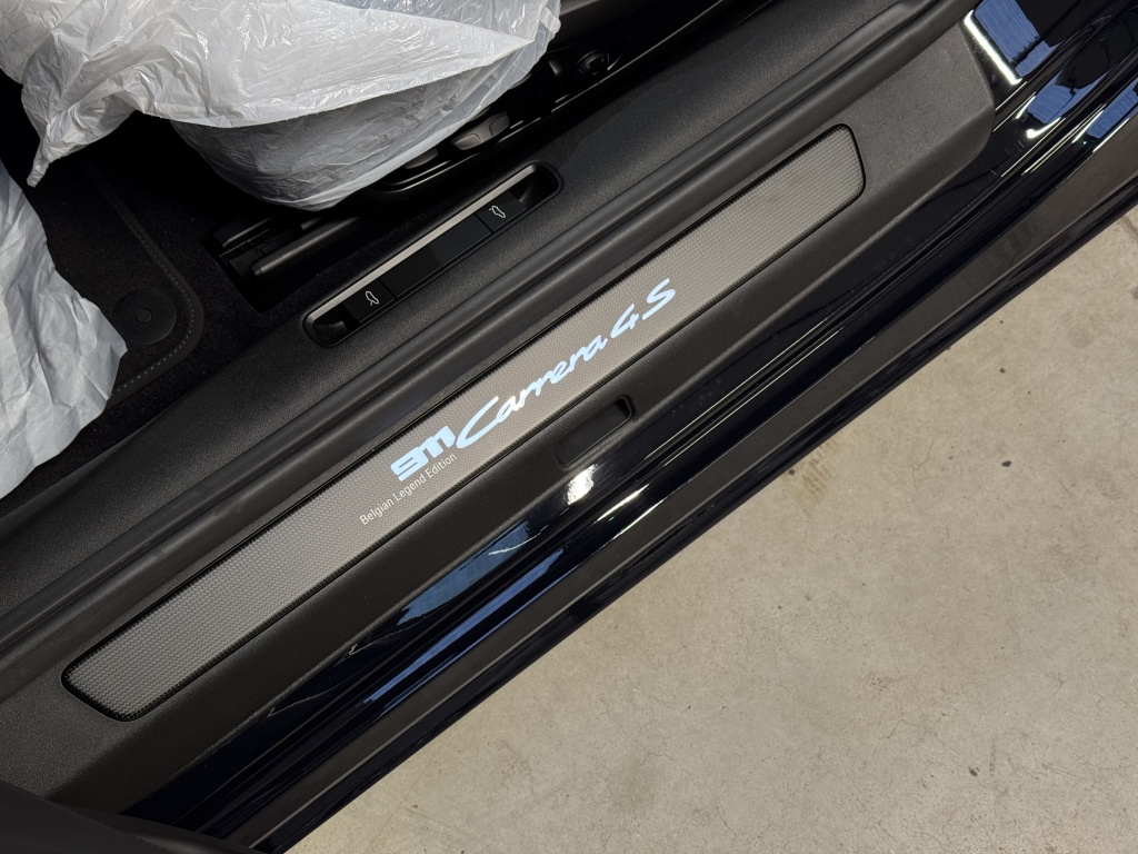 de Porsche 992 Belgian Legend Edition, een van slechts 75 exemplaren wereldwijd. Dit voertuig werd nieuw geleverd in België en zorgvuldig bewaard in een privécollectie. De teller staat op slechts 19 km – puur afleveringskilometers.