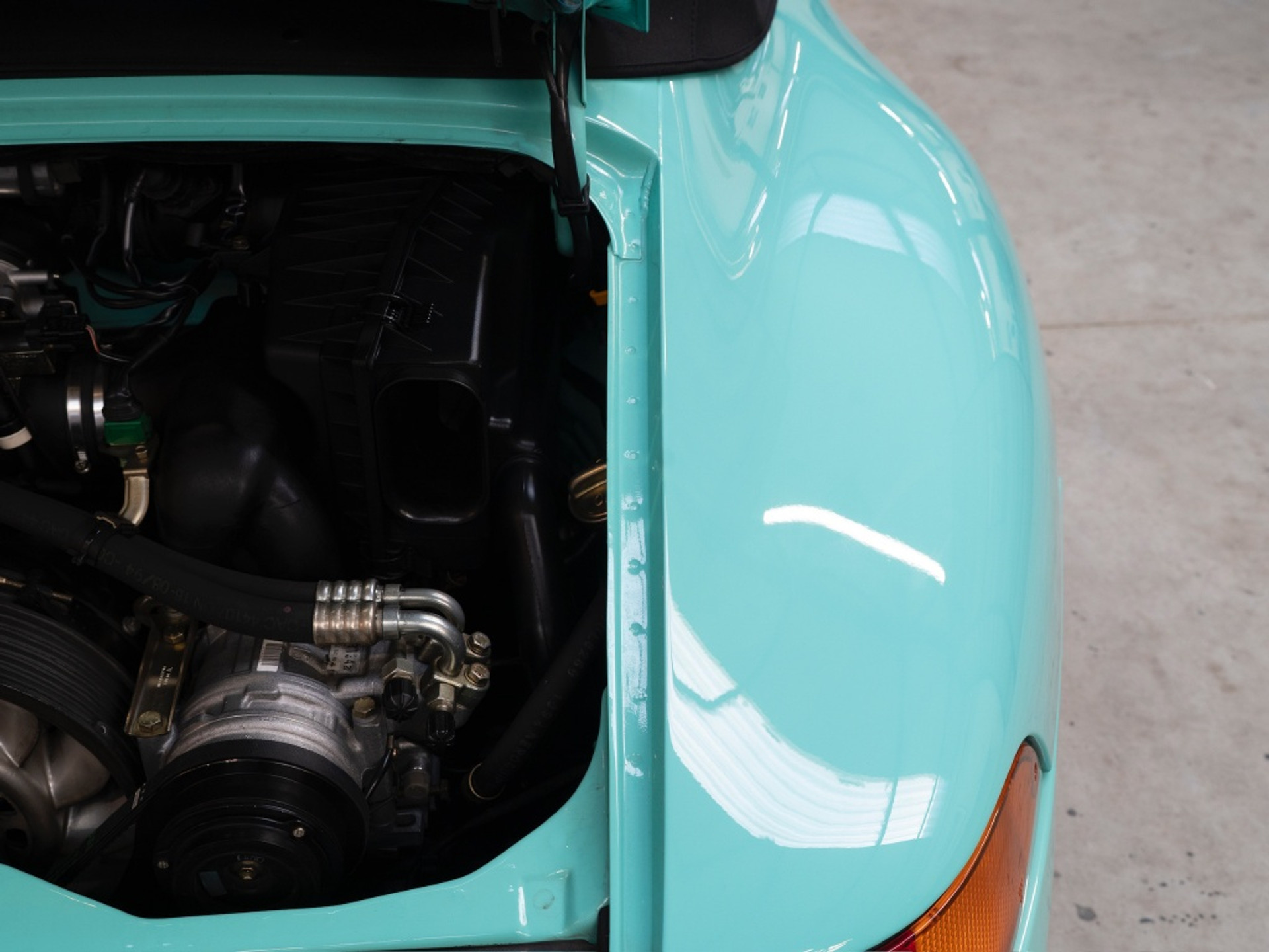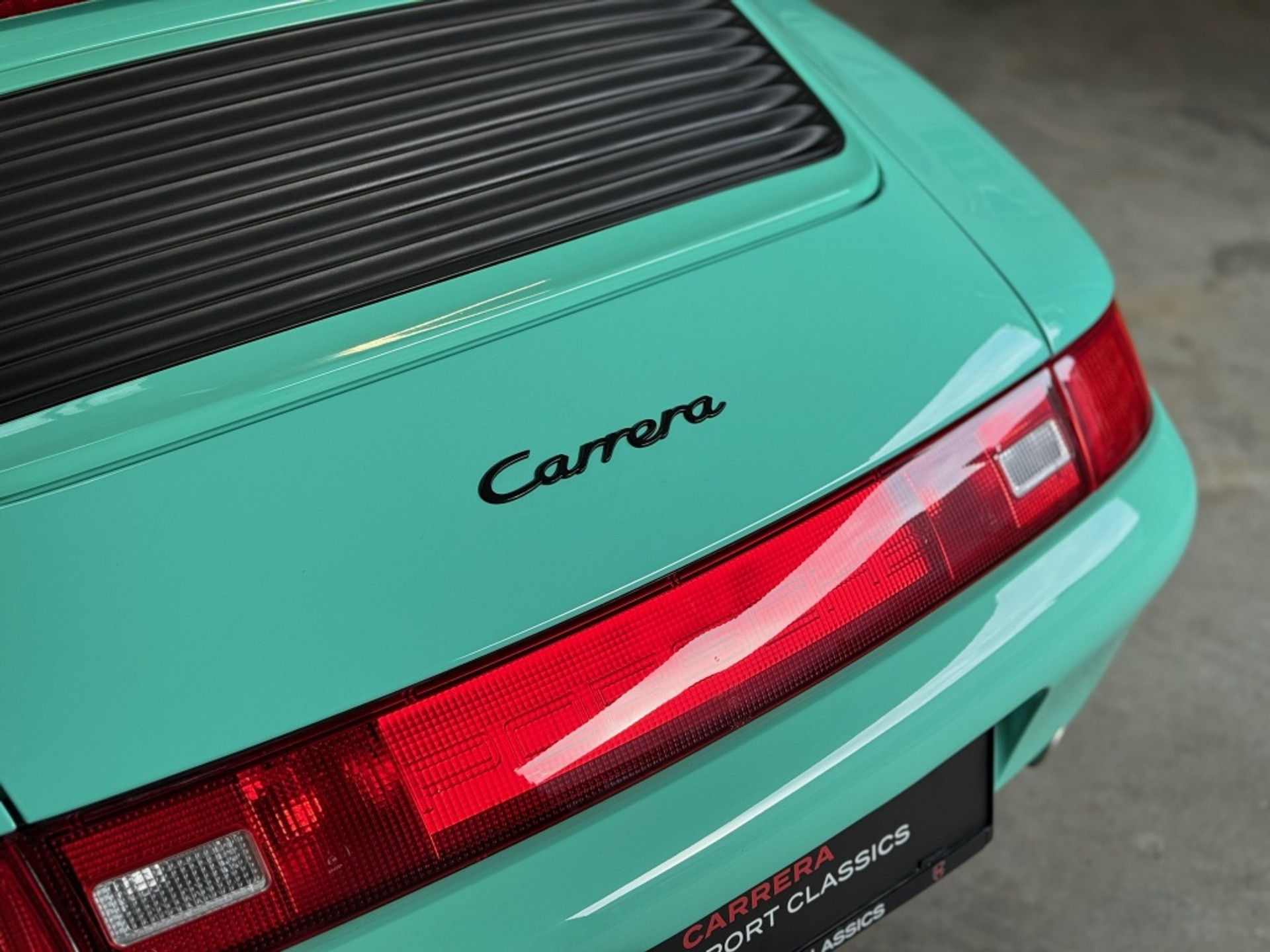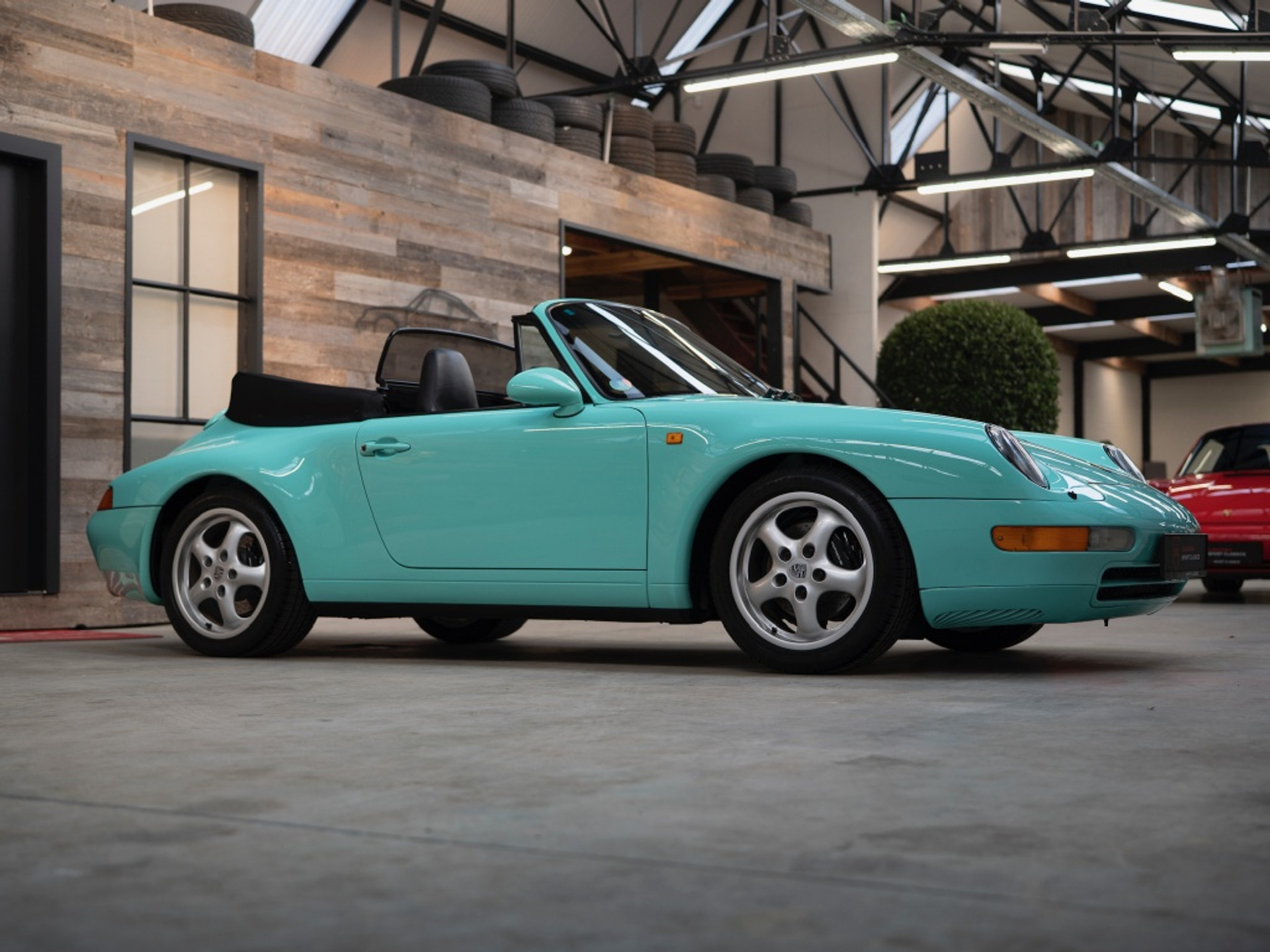 Extreem zeldzaam: Porsche 993 Carrera 2 in de iconische Porsche kleur Mint Green (Paint-to-Sample) – manueel, origineel geleverd in Duitsland, en jarenlang eigendom van dezelfde eigenaar.