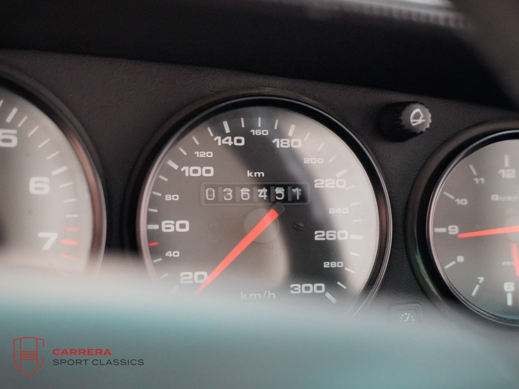 Deze Porsche verkeert in een buitengewoon originele en verzorgde staat. Het koetswerk is ongevalvrij, roestvrij, en vertoont enkel enkele kleine steenslagsporen aan de voorzijde – volledig in lijn met de kilometerstand. Het interieur is in absolute topconditie en getuigt van zorgvuldig gebruik.