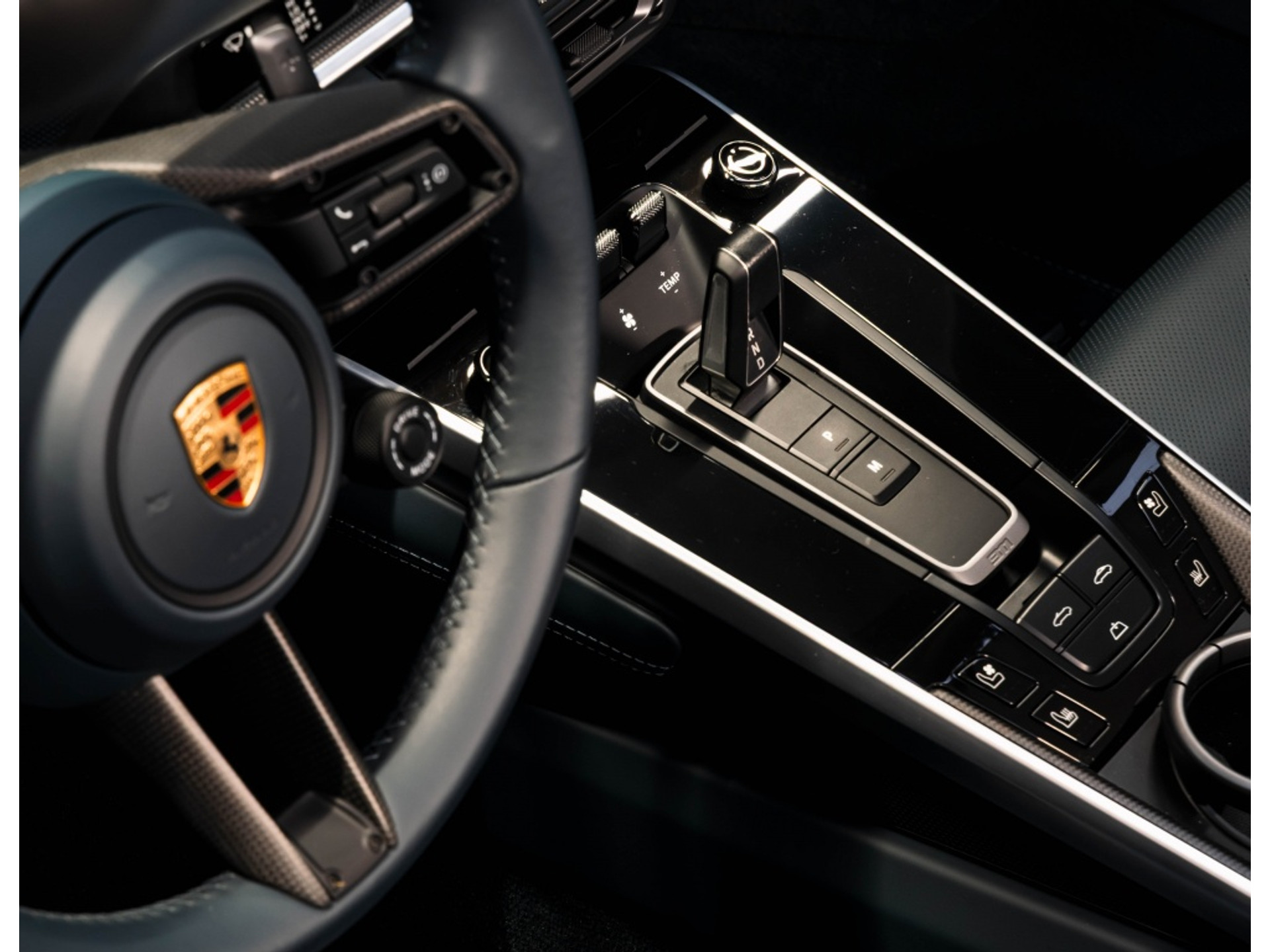 Stoelverwarming (4A3) · Stoelventilatie (4D3) · Sport Plus stoelen in leder met carbon mat inlay (2TC) · Verwarmd multifunctioneel GT-sportstuur in leder met carbon mat inlay (2PF) · PDK-selectiehendel in aluminiumkleur (7T3).