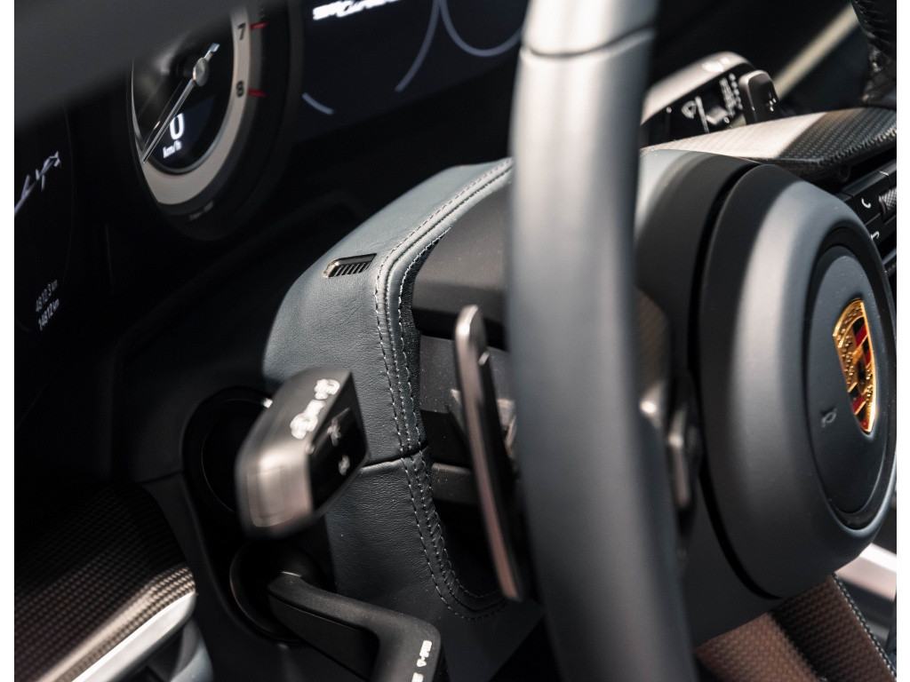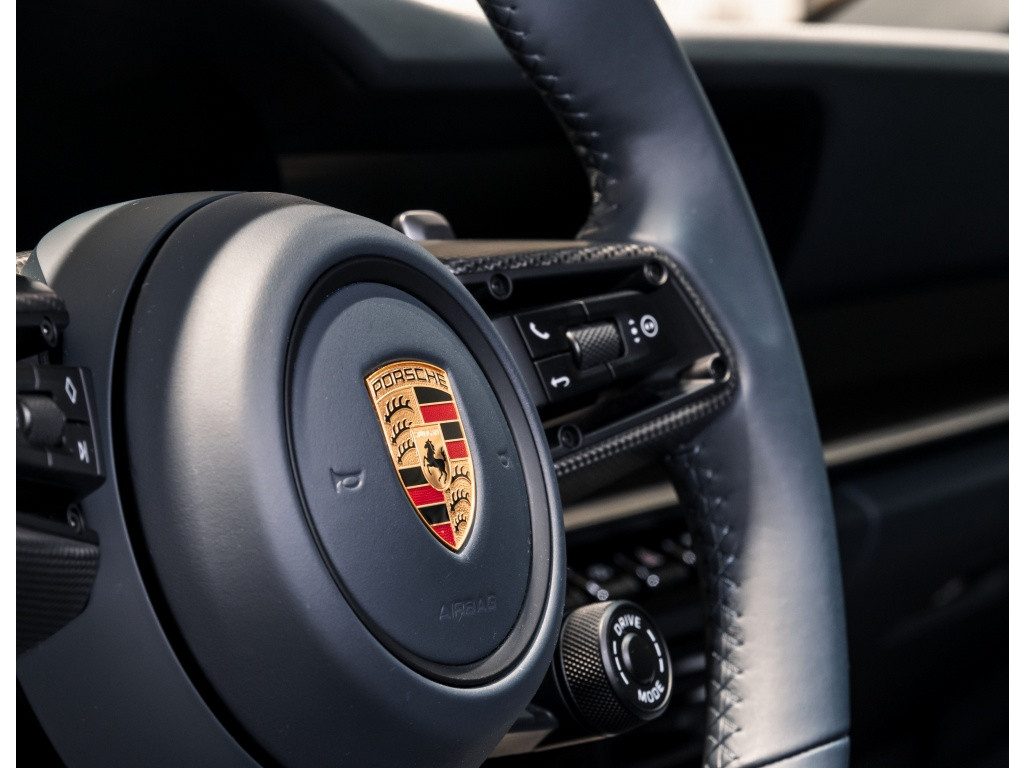 Dit omvat o.a. het Aerokit, SportDesign elementen in hoogglans zwart, sportuitlaatsysteem zwart, Matrix LED-koplampen donker met PDLS+, Surround View, Porsche Entry & Drive, Lane Change Assist, Front Axle Lift, verwarmde en geventileerde stoelen, verwarmd multifunctioneel GT-sportstuur met mat carbon inlay, witte instrumentenwijzerplaten, Sport Chrono met witte teller, Ambient lighting, veiligheidsgordels in Crayon, Exclusive Design vloermatten met lederen bies en nog veel meer.