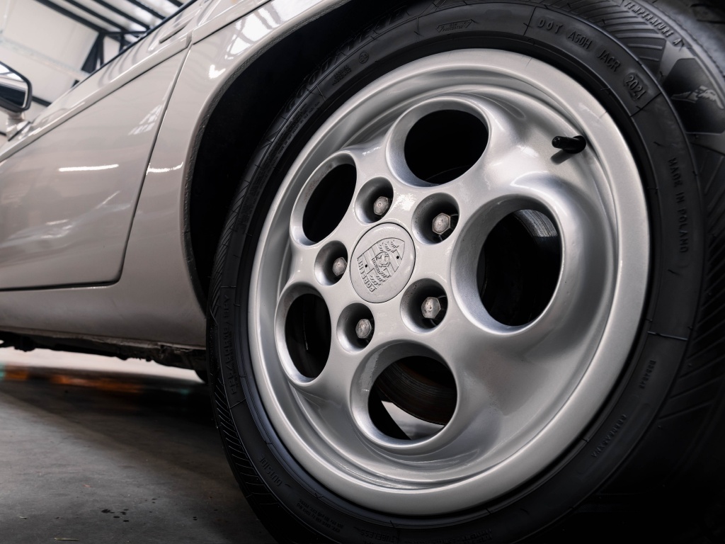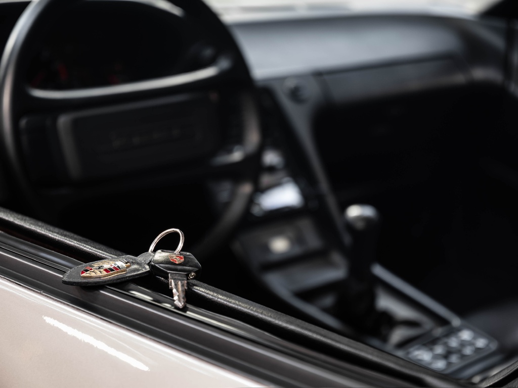 Uitgevoerd in Zinn Metallic (956), een Sonderfarbe die je slechts zeer zelden ziet op een 928. De kleur past perfect bij het elegante en gespierde design van de wagen en geeft hem een stijlvolle, volwassen uitstraling.