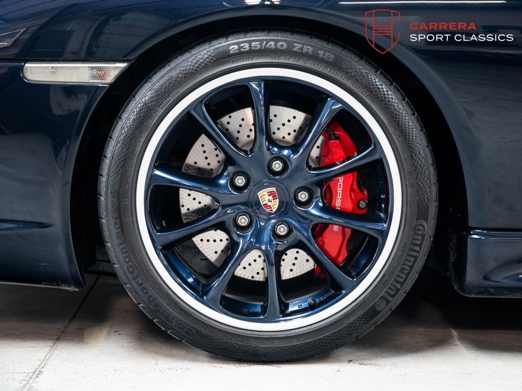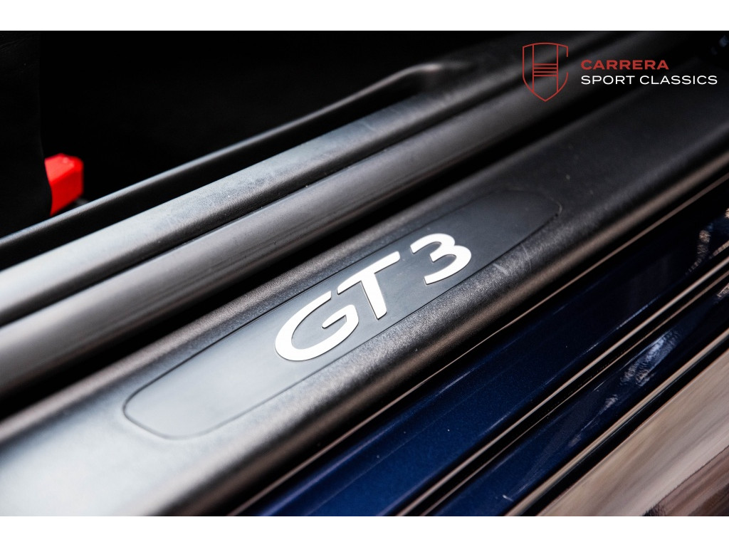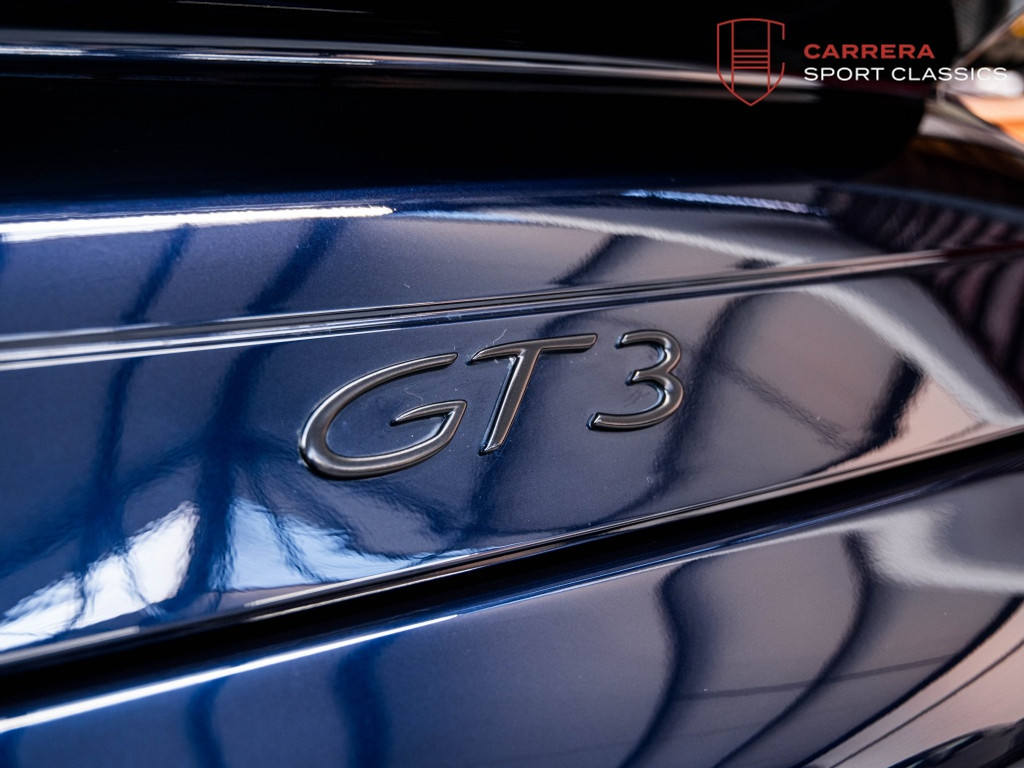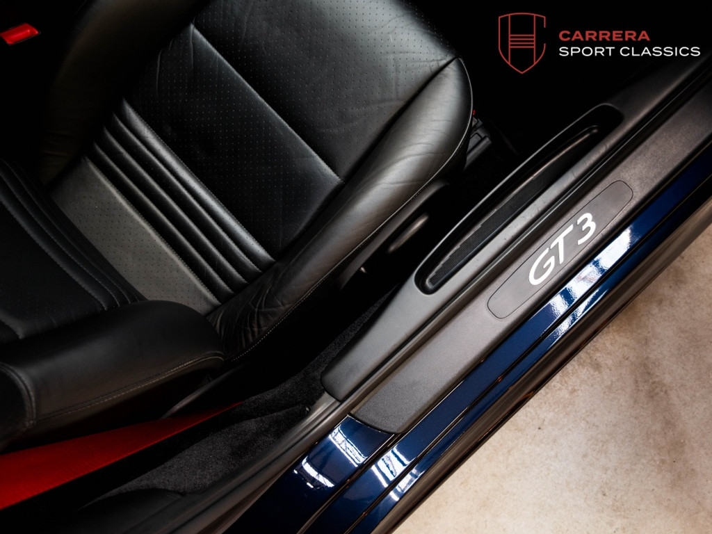 Uitgevoerd in het bijzonder elegante Midnight Blue Metallic (L39C) — een kleur die zelden voorkomt op een 996 GT3 — heeft deze wagen een zeer exclusieve en tijdloze uitstraling.