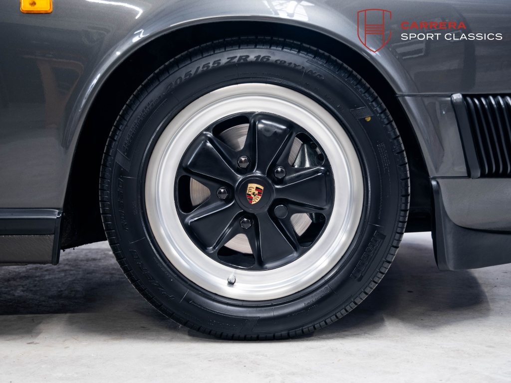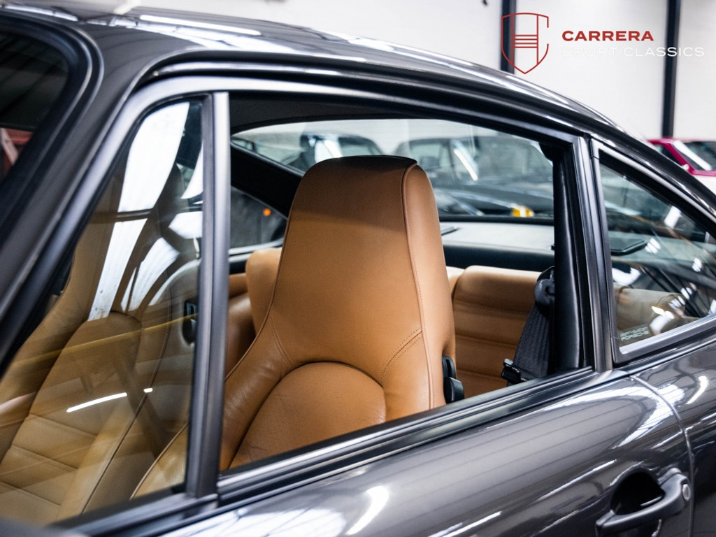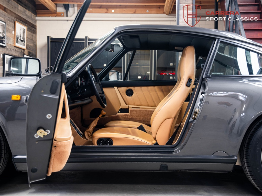 De wagen is uitgevoerd in het elegante en relatief zeldzame Slate Grey Metallic (L22D) gecombineerd met Cashmere Beige leder (LC). Een bijzonder stijlvolle en tijdloze kleurcombinatie die perfect past bij de lijnen van de klassieke G-serie 911. Slate Grey is bovendien een kleur die zelden voorkomt op late 3.2 Carrera’s en zeer geliefd is bij verzamelaars.